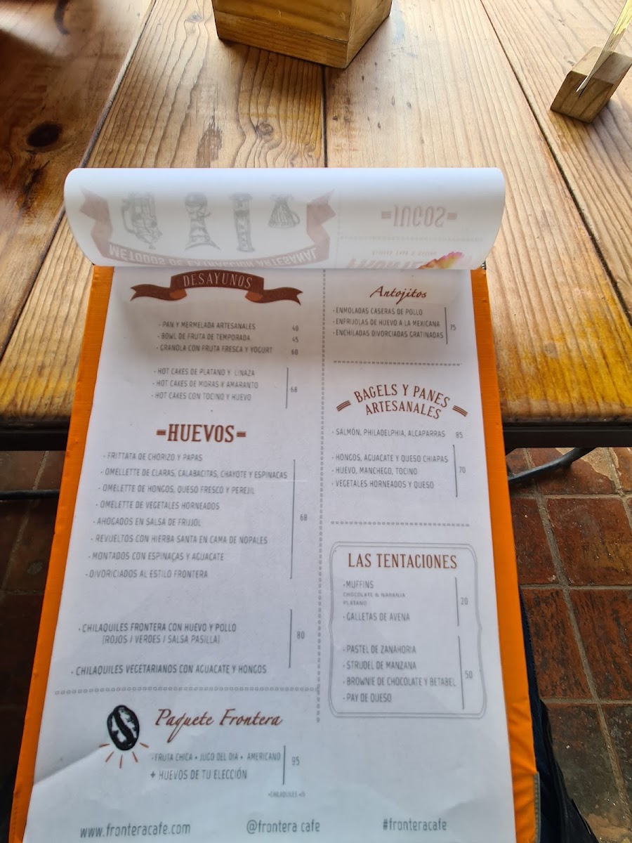 Welcome to Frontera Artisan Food and Coffee, a hidden gem nestled in the heart of San Cristobal de las Casas. Located in a beautifully renovated 400-year-old hacienda, this charming spot is perfect for those seeking a tranquil escape. The menu boasts a delightful array of offerings, from expertly brewed Chiapas pour-over coffee to mouthwatering breakfast options, including fluffy banana pancakes and locally sourced cheeses.